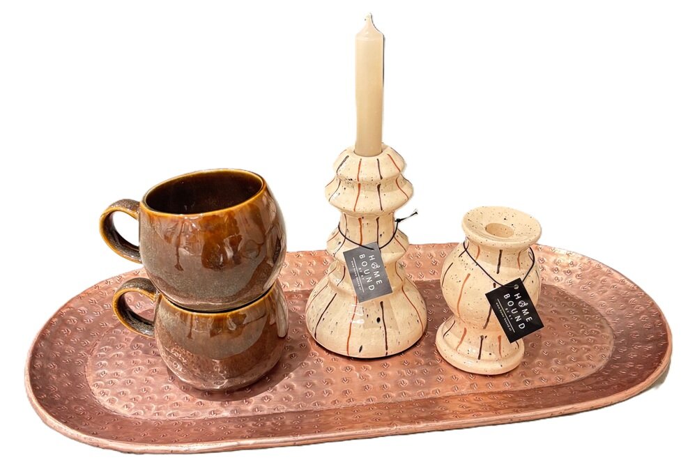 Gebruik het dienblad als blikvanger op een salontafel, dressoir of eettafel. Creëer een stijlvol geheel met meerdere decoratieve items bij elkaar. Door de warme koperkleur past het perfect in een wereldse interieurstijl, en valt echt op in jouw interieur.