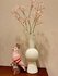 De zachte witte kleur zorgt voor een frisse en serene look, terwijl de unieke vorm direct de aandacht trekt. Of je de vaas nu plaatst op een eettafel, dressoir of in een open kast; hij komt altijd perfect tot zijn recht, zowel met als zonder bloemen.